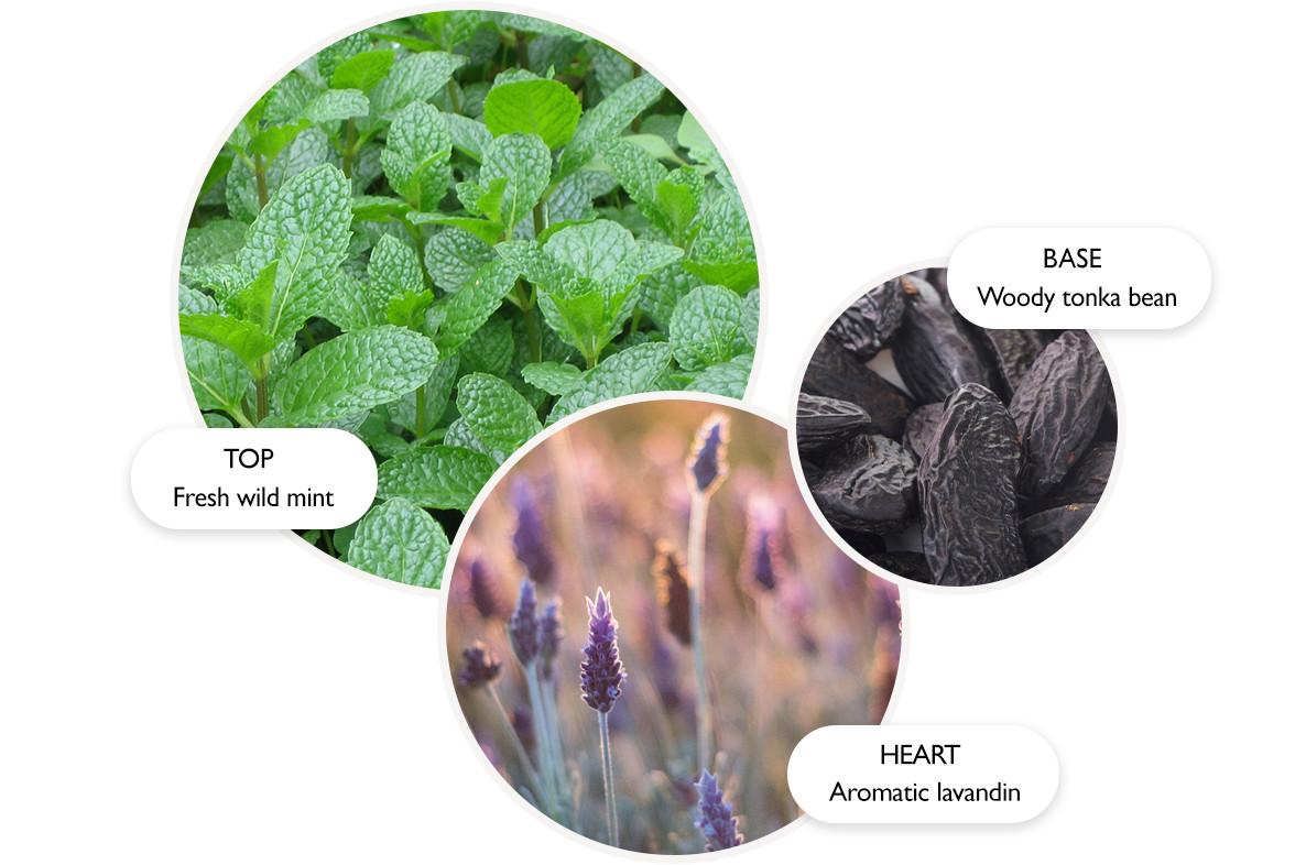 Ez a kifinomult, természetesen élénkítő és friss aromájú tusfürdőnk vadregényes erdőt varázsol az Ön fürdőszobájába; merüljön el a vad menta, a provence-i fenntartható termesztésből származó lágyszárú levandin – a levendula erőteljes változata – átható felhőjében, a melengető nősziromgyökér modern csavarjával.