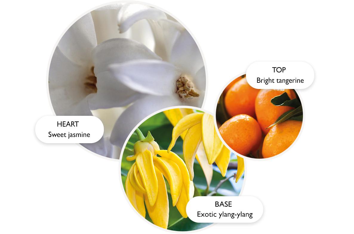 Nyugtató virágillatú tusfürdő gélünk tökéletes a nap végi kikapcsolódáshoz a ragyogó mandarin, az igéző ilang-ilang és a meleg vanília pihentető keverékével.