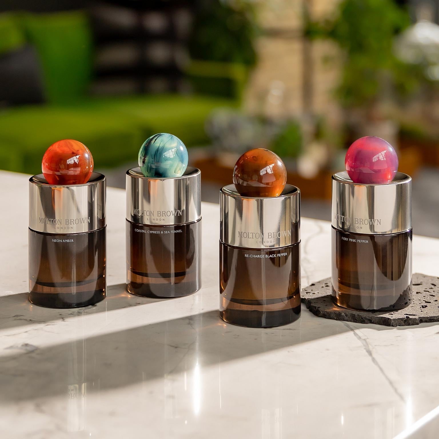 A Molton Brown termékei egyedi illatélményt nyújtanak, melyek minden érzéket elvarázsolnak. A legnépszerűbb kollekciók között található a selymes Orange & Bergamot, amely friss citrusos energiát kínál, és a mély, keleties tónusokkal rendelkező Re-charge Black Pepper.